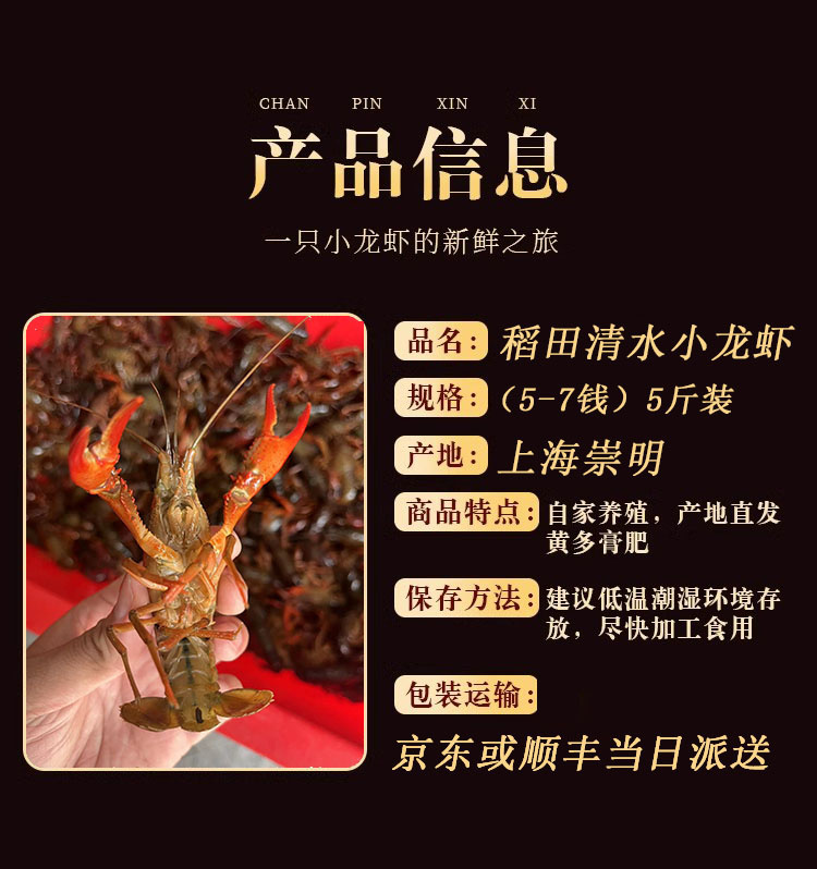 今时令 崇明养殖基地清水小龙虾 (5-7钱)