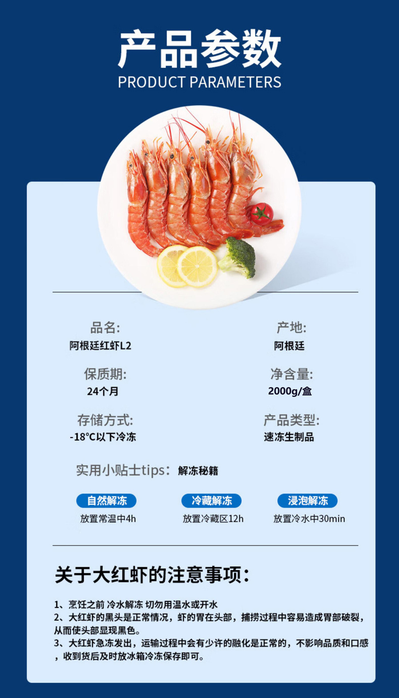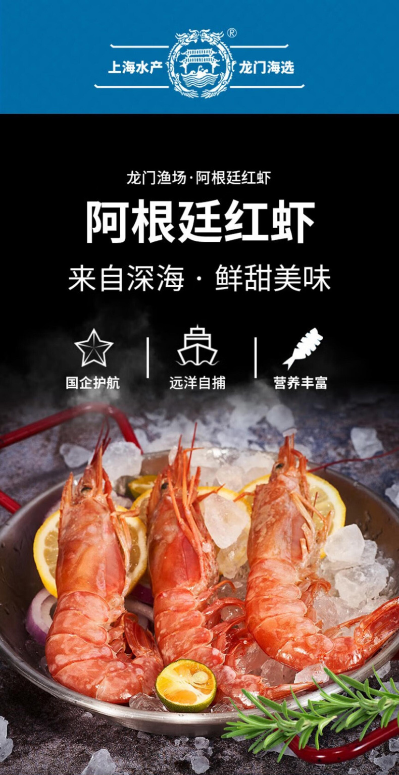 龙门 海鲜水产新鲜阿根廷红虾 2000g/盒鲜活冷冻海鲜水产