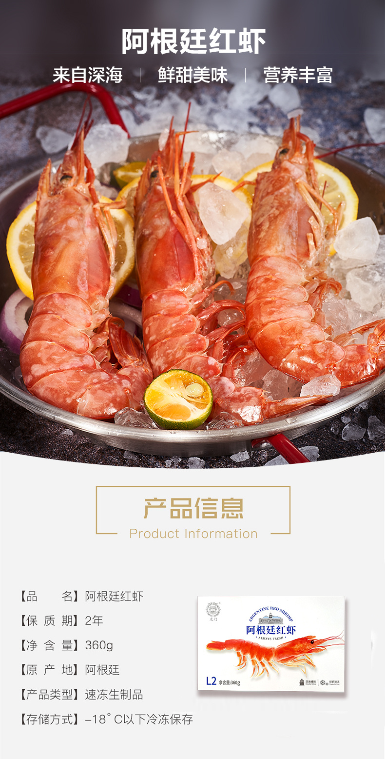 龙门 海鲜水产 新鲜阿根廷红虾L2超大360g/盒鲜活冷冻海鲜水产
