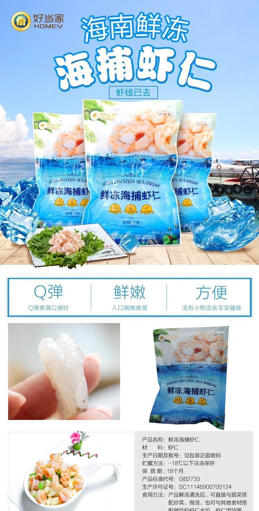 好当家鲜冻海捕虾仁200g*10袋