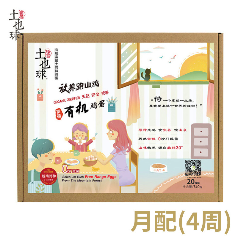 【月配4周】土也球 有机富硒跑山土鸡鲜鸡蛋20枚 每周配送1次 共计配送4次