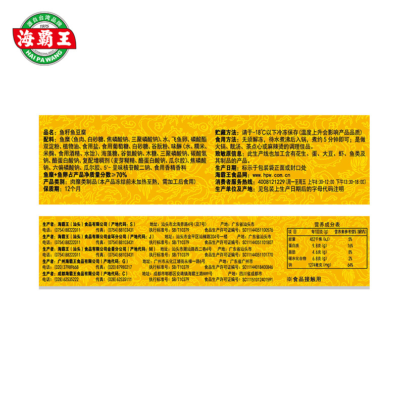 海霸王 鱻宴 鱼籽包+鱼竹轮+鱼豆腐组合 共125g*6包