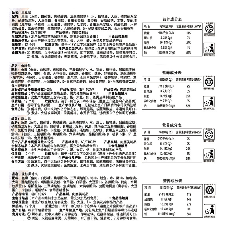 海霸王 锁鲜装组合 芝士包+花枝风味丸+鱼豆腐+鱼籽包 共240g*4包组合