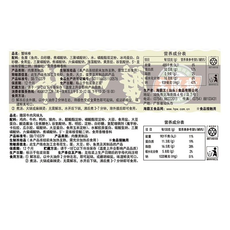 海霸王 锁鲜装火锅丸子蟹味棒一口肠6包套餐组合 240g*4袋+250g1袋+120g1袋
