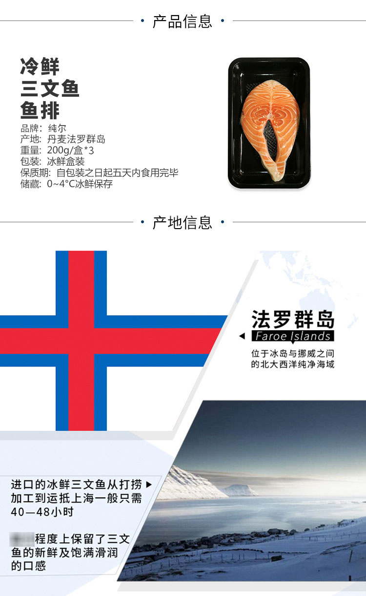 纯尔 冷鲜三文鱼鱼排 200g*3