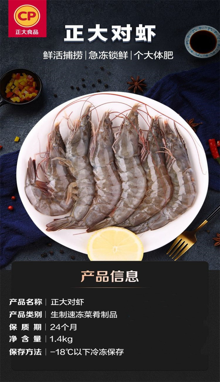CP正大食品 正大生制对虾(13-15) 1.4kg